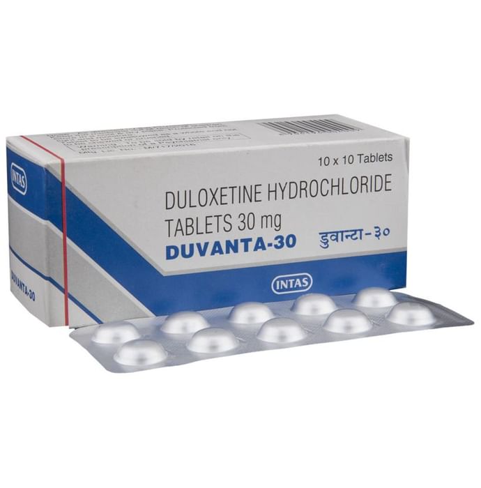 Duvanta 30 Tablet is used in the treatment of depression, anxiety disorder, diabetic nerve pain, fibromyalgia (a condition in which there are generalized pain and tenderness in the body), neuropathic pain, and stress urinary incontinence. Duvanta 30 Tablet works by increasing the level of chemical messengers (serotonin and noradrenaline) in the brain that have a calming effect on the brain and relax the nerves, thus treating your illness. It may be taken with or without food. It is advised to take this medicine at a fixed time each day to maintain a consistent level in the blood. If you miss any doses, take it as soon as you remember. Do not skip any doses and finish the full course of treatment even if you feel better. This medication mustn't be stopped suddenly as it may worsen your symptoms. Some common side effects of this medicine include nausea, headache, and dry mouth. It even causes dizziness and sleepiness, so do not drive or do anything that requires mental focus until you know how this medicine affects you. However, these side effects are temporary and usually resolve on their own in some time. Please consult your doctor if these do not subside or bother you. Before taking Duvanta 30 Tablet, inform your doctor if you have any problems with your kidneys, heart, liver, or have a history of seizures (epilepsy or fits). Inform your doctor if you develop any unusual changes in mood or behavior, new or worsening depression, or if you have any suicidal thoughts.