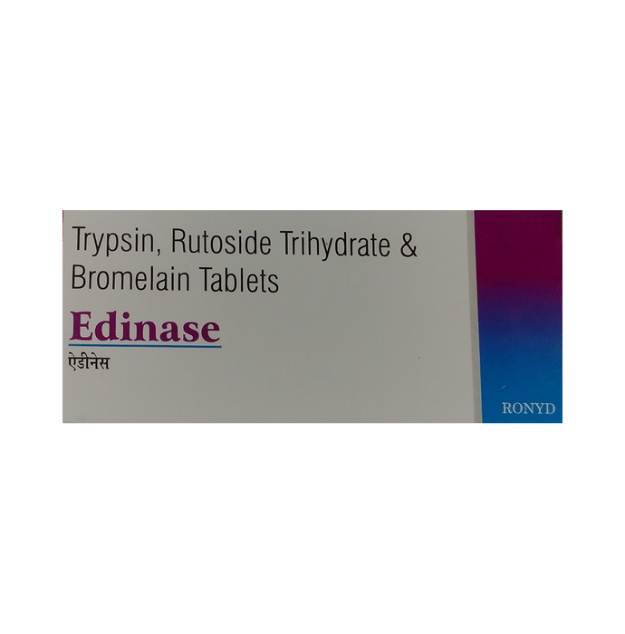 In Pain relief Edinase Tablet is a combination of medicines used for relief of pain, inflammation, and swelling in conditions that may occur due to trauma, surgery or everyday life. It may also be used to provide relief in degenerative and inflammatory conditions that affect muscles and joints such as rheumatoid arthritis and osteoarthritis. It promotes speedy recovery due to its anti-inflammatory and antioxidant properties. Take it as it is prescribed to get the most benefit. This will help you to go about your daily activities more easily and have a better, more active, quality of life.
