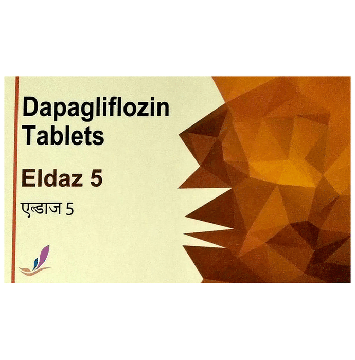 Eldaz 5 Tablet is used alone or in combination with other medicines to treat type 2 diabetes mellitus. It helps control the high blood sugar levels seen in diabetes. This reduces the chances of serious complications of diabetes and also helps prevent heart disease. Eldaz 5 Tablet can be taken with or without food at any time of day but you should try to take it at the same time every day. The dose will be decided by your doctor. Do not stop taking it without asking your doctor. If you do, your blood sugar levels may increase and put you at risk of serious complications like kidney damage and blindness. This medicine is only part of a treatment program that should include a healthy diet, regular exercise, and weight reduction as advised by your doctor. The most common side effects of Eldaz 5 Tablet include fungal infection of the vagina, nasopharyngitis (inflammation of the throat and nasal passages), and urinary tract infections. It may cause the body to lose too much water. Drink plenty of fluids to prevent dehydration. Maintaining good hygiene can help prevent the development of fungal infections in the genital area. Before taking this medicine, inform your doctor if you have any kidney or liver problems or a urinary tract infection or if you are on water pills (diuretics). Pregnant or breastfeeding women should also consult their doctor before taking it. Avoid excessive alcohol intake while taking it as this may increase the risk of developing some side effects. Monitor your blood sugar levels regularly while taking this medicine.