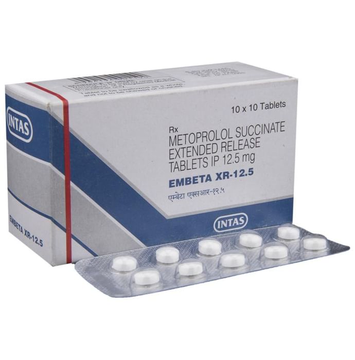 In Treatment of Hypertension (high blood pressure) Embeta XR 12.5 Tablet belongs to a group of medicines called long-acting beta-blocker. Embeta XR 12.5 Tablet works by blocking the effects of some chemicals on your heart and blood vessels. It slows down your heart rate and helps it to beat with less force. This lowers your blood pressure and helps in reducing your risk of having a stroke, a heart attack, other heart problems, or kidney problems in the future. This medicine needs to be taken regularly to be effective, so keep taking it even if you feel well. Do not stop without talking to your doctor. In Treatment of Angina (heart-related chest pain) Embeta XR 12.5 Tablet relaxes the blood vessels so that blood can flow more easily around your body and makes sure that your heart is getting a good supply of oxygen. This makes it less likely that you will suffer chest pain caused by angina. This medicine can help increase your ability to exercise and go about your daily life more easily by reducing the frequency of angina attacks. You should take it regularly and as long as it is prescribed for it to work effectively. In Treatment of Arrhythmia Embeta XR 12.5 Tablet is used to stabilize heart rhythms (particularly atrial fibrillation). It helps in normalizing an abnormal heart rhythm, preventing it from occurring in the first place or slowing down the heart rate during an episode. In Prevention of Heart attack Embeta XR 12.5 Tablet helps lower your blood pressure and make it easier for your heart to pump blood around your body. This reduces the chances of you having a heart attack. It can also reduce the risk of dying if it is given immediately after a heart attack. This medicine needs to be taken regularly to be effective, so keep taking it even if you feel well. Do not stop without talking to your doctor. In Prevention of Migraine Embeta XR 12.5 Tablet helps change electrical activity in the brain, reduce the flow of blood in your brain or increase activity in a region of the brain associated with migraines. By preventing and reducing the frequency of migraine attacks, the medicine can help you carry out your daily activities and improve your quality of life.