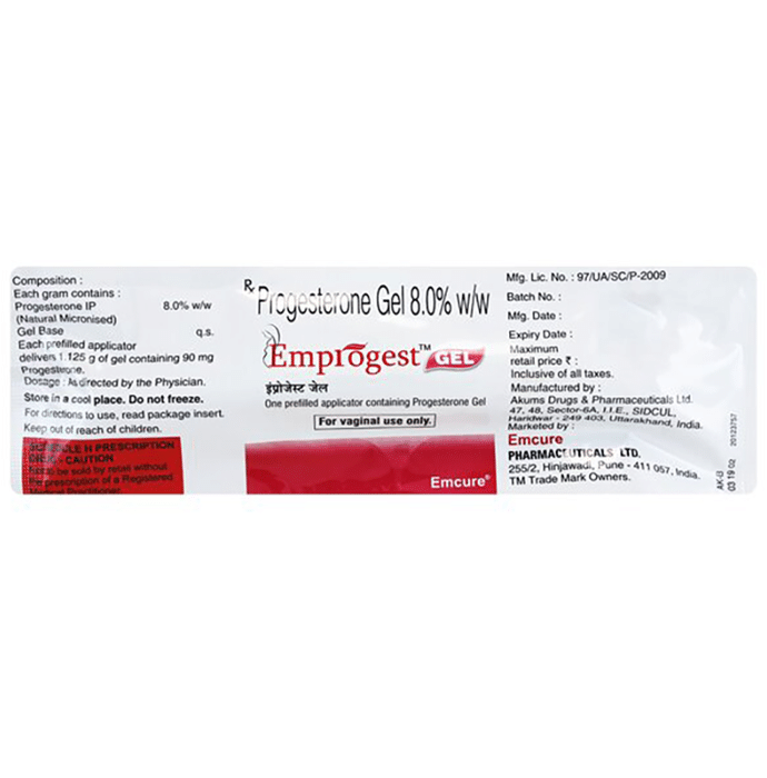 In Hormone replacement therapy Hormone placement therapy (HRT) is a treatment to relieve symptoms of menopause such as hot flushes, night sweats, mood swings, vaginal dryness, and reduced sex drive. Since menopause can last for several years, this treatment can make a big improvement to your daily life and mood. Progesterone is one of two important hormones (the other being is estrogen) used in this treatment. However, it may not treat all your symptoms, consult with your doctor. You should use this medicine as it is prescribed, and for as long as it is prescribed by your doctor. In Treatment of Female infertility Emprogest 8% Vaginal gel contains progesterone, a female hormone that is important in the regulation of ovulation and menstruation. It is used to cause menstrual periods in women who have not reached menopause but are not having periods due to a lack of natural progesterone in the body. This medicine helps to prepare the uterus for pregnancy by causing the uterus lining (endometrium) to thicken. This increases the chance of a successful pregnancy. You should use the medicine as prescribed for it to be effective. You may be asked to continue with this treatment for a period after becoming pregnant.