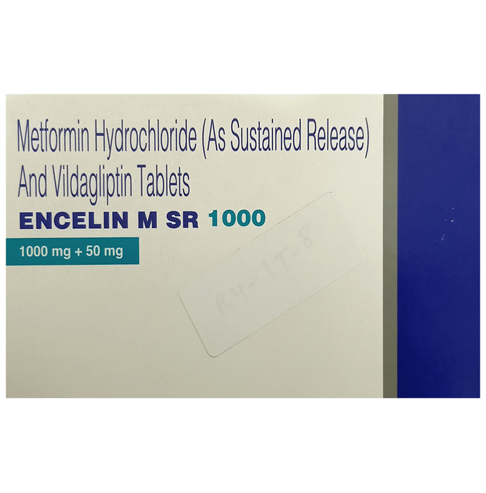 Encelin M SR 1000 Tablet is a combination of two medicines that control high blood sugar levels in people with type 2 diabetes mellitus. This helps prevent serious complications of diabetes such as kidney damage and blindness and may also reduce your chances of having a heart attack or stroke. Encelin M SR 1000 Tablet can be prescribed alone or together with other diabetes medications. All diabetes medicines work best when used along with a healthy diet and regular exercise. The dose you are given will depend on your condition, blood sugar levels, and what other medicines you are taking. Taking it with meals helps to reduce the chances of developing an upset stomach. You should take it regularly, at the same time each day, to get the most benefit and you should not stop unless your doctor recommends it. It is controlling your blood sugar levels and helping to prevent serious complications in the future. It is important to stay on the diet and exercise program recommended by your doctor while taking this medicine. Your lifestyle plays a big part in controlling diabetes. The most common side effects of taking this medicine include diarrhea, nausea, vomiting, upset stomach, headache, and sore throat. Low blood sugar level (hypoglycemia) is a possible side effect if you are also taking other diabetes medicines like insulin or sulphonylurea, so you need to know how to recognize and deal with it. This medicine is not suitable for everyone. Before taking it, you should let your doctor know if you have ever had kidney, liver, or heart disease, problems with your pancreas, or if you drink a lot of alcohol. Pregnant or breastfeeding women should also consult their doctor before taking this medicine. Some other medicines can affect this one so tell your doctor about all the medicines you are taking to make sure you are safe. You should try to avoid drinking alcohol as it lowers blood glucose. Your doctor will check your kidney function and blood sugar levels before and during treatment.