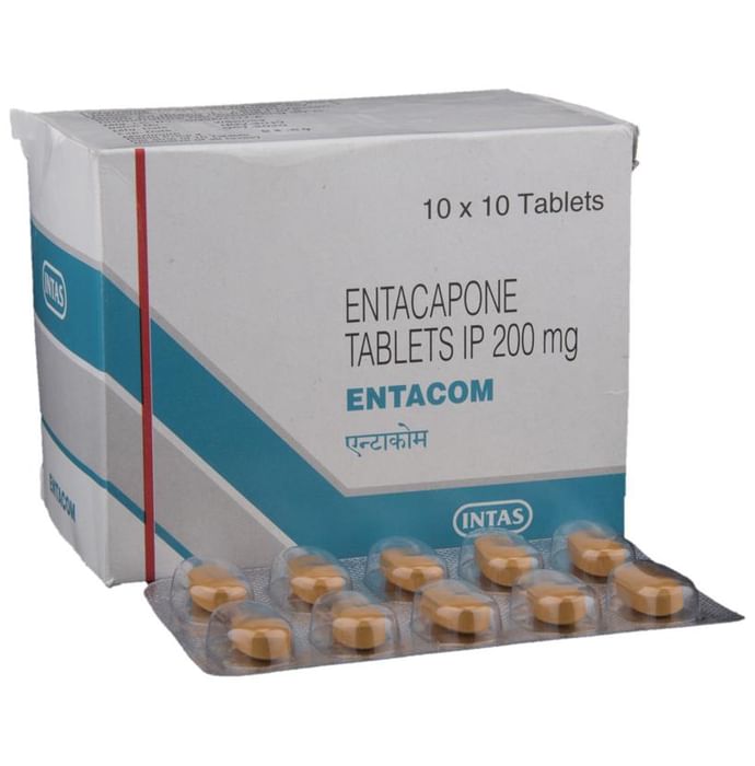 Entacom Tablet is used in the treatment of Parkinson's disease. It helps to treat wearing-off symptoms of Parkinson's disease, such as stiffness, tremors, muscle spasms, and poor muscle control. Entacom Tablet is usually used in combination with carbidopa/levodopa. It may be taken with or without food, preferably at bedtime. However, take it at the same time each day as this helps to maintain a consistent level of medicine in the body. Take this medicine in the dose and duration as advised by your doctor. If you have missed a dose, take it as soon as you remember it. This medication mustn't be stopped suddenly without talking to the doctor as it may worsen your condition. Your doctor may advise for periodic skin examination as it can cause melanoma. Some common side effects of this medicine include nausea, vomiting, fatigue, confusion, constipation, insomnia(difficulty sleeping), nightmares, and increased sweating. It may also cause dizziness and sleepiness, so do not drive or do anything that requires mental focus until you know how this medicine affects you. It is common to have diarrhea with this medicine, so drink plenty of fluids and watch for weight loss. Inform your doctor if you develop any unusual changes in mood, an abnormally high sex drive, and hallucinations. It may cause your urine to change in a brownish-orange color but it is not harmful and usually resolves once treatment is completed. Please consult your doctor if these side effects worry you or do not go away.