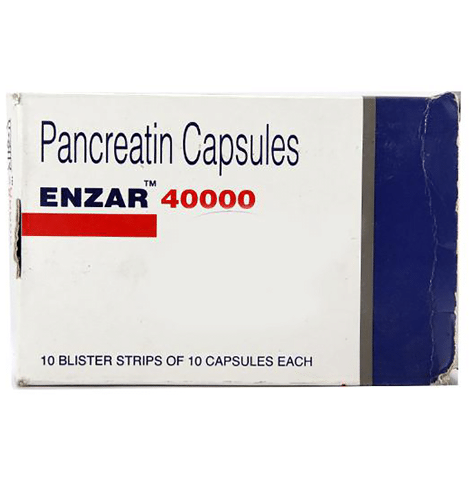 In Pancreatic enzyme deficiency Enzar 40000 Capsule is an enzyme supplement for people who do not make enough naturally in their bodies to digest food properly. The enzymes in this medicine help digest food (fats, carbohydrates, and protein) as it passes through the gut. It should be taken with your meal or snack to help it work effectively. Take Enzar 40000 Capsule for as long as it is prescribed for maximum benefits. Some may need it for the rest of their lives. You might also be asked to alter your diet to help with digestion.