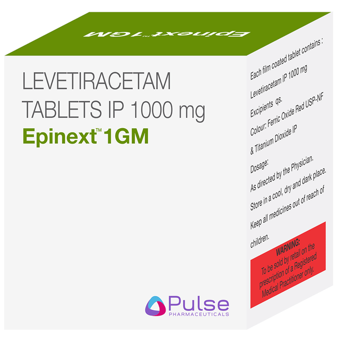 Epinext 1GM Tablet is an anti-epileptic medicine used to treat seizures (fits) in epilepsy. It can be used alone or along with other medicines. It helps to prevent seizures for as long as you continue to take it. Epinext 1GM Tablet suppresses the abnormal electrical activity in the brain. You can take it with or without food but try to take it at the same time each day to get the most benefit. The dose will depend on your condition and how you respond to the medicine. Your doctor will advise the right dose for you. It is generally advised as a long-term treatment. You should continue taking it for as long as your doctor has told you to, even if you feel well. If you stop or miss doses your seizures could get worse. Some common side effects of this medicine include dizziness, headache, infection, irritation, nasal congestion (stuffy nose), sleepiness, behavior changes, aggressive behavior, and decreased appetite. Side effects are more common during the first few weeks and usually lessen as your body gets used to the medicine. Most of these side effects do not need medical attention, but some of them can be serious. A small number of people being treated with this medicine have had thoughts of harming or killing themselves. Contact your doctor if your mood changes for the worse. Before taking it, you should tell your doctor if you have kidney problems, depression, or suicidal thoughts and if you are pregnant, planning to become pregnant, or breastfeeding. Your doctor may suggest regular blood tests to monitor your kidney function while taking this medicine.