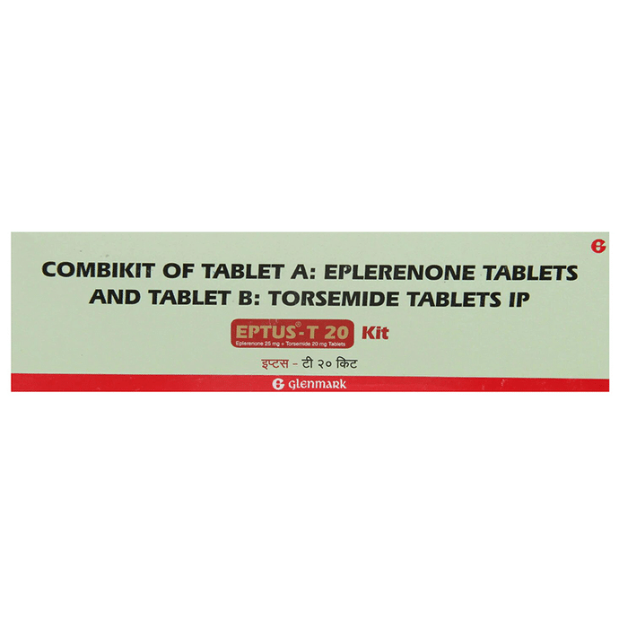 Eptus-T 20 Kit is a combination of two medicines used to reduce excess fluid levels in the body. It is used to treat edema (fluid overload) and some cases of hypertension (high blood pressure). It is best to take Eptus-T 20 Kit in the morning along with food in order to avoid frequent urination at night time. For better results, it is suggested to take it at the same time every day. The dose and how often you take it depends on what you are taking it for. Your doctor will decide how much you need to improve your symptoms. You should take this medicine for as long as it is prescribed for you. Dehydration and constipation are some common side effects of this medicine. It might lower down the level of calcium, sodium and magnesium in the blood. Hence, regular monitoring of kidney function and electrolytes is important while using this medicine. It is generally safe to use during pregnancy or breastfeeding. Before taking this medicine, tell your doctor if you have any liver or kidney disease. You should also let your healthcare team know all other medicines you are taking as they may affect, or be affected by this medicine.
