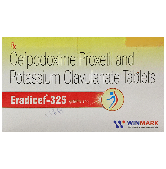 Eradicef 325 Tablet is a combination of two medicines. It is prescribed to treat respiratory tract infections. It treats the infection and prevents further growth and spread of the microorganisms. Eradicef 325 Tablet is a prescription medicine. It is advised to take it as per the prescription. It can be taken with or without food, but it must be taken at a fixed time to ensure better efficacy. Do not consume more than the recommended dose, as this may have harmful effects on your body. If you miss a dose, take it as soon as you remember. The course of the treatment must be completed even if you feel better. Sudden discontinuation of the treatment may affect the potency of the medicine. Some common side effects of this medicine are nausea, vomiting, diarrhea, indigestion, etc. If any of the side effects get aggravated, you must consult your doctor immediately. If you experience any allergic reaction (rashes, itching, swelling, shortness of breath, etc.), you must seek immediate medical help. Before taking this medicine, you should tell your doctor if you are taking any medicines for any health condition. Pregnant or breastfeeding women should also consult with their doctor before taking it. Avoid drinking alcohol as it can cause excessive drowsiness with this medicine. It usually does not impair your ability to drive, but you should not drive if it makes you feel sleepy or dizzy. You must take adequate rest for a faster recovery, also take a healthy diet and drink plenty of water. Your doctor may ask for a few laboratory and diagnostic tests to know the effects of the medicine on your body.