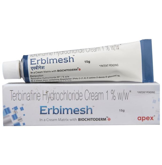 Erbimesh Cream is used to treat a wide range of fungal infections of the skin and nails, including ringworm. It works by killing the fungi that cause the infection. Erbimesh Cream is for external use only. It should be used in the dose and duration suggested by the doctor. The affected area should be clean and dry before the application of this medicine. You must wash your hands thoroughly before and after application. Do not stop using it until you have finished the complete course, even when you feel better. If you stop using this medicine too early, the fungi may continue to grow and the infection may return or worsen. The most common side effects of this medicine include application site reactions like burning, irritation, itching, and redness, and skin peeling. These are usually mild but let your doctor know if they bother you or last more than a few days. Avoid direct contact with the eyes, nose, or mouth. If accidental exposure occurs, rinse immediately with plenty of water. You must inform your doctor if there’s no improvement even after four weeks of treatment. It is not likely that other medicines you take by mouth or injection will affect the way this medicine works but inform your doctor about all other medicines you are taking. Also, let your doctor know if you have used a similar medicine before and had an allergic reaction. Pregnant and breastfeeding mothers should consult their doctor before using it.