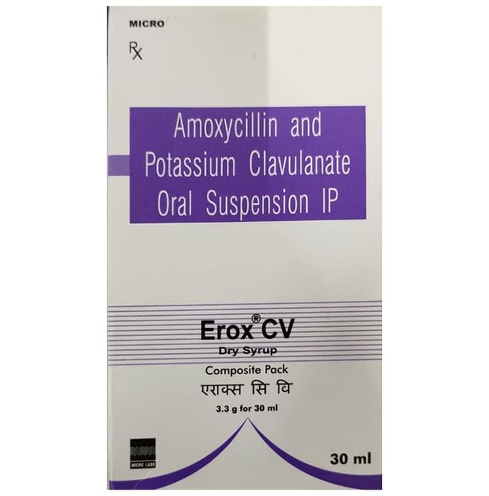 In Treatment of Resistance Tuberculosis (TB) In multidrug-resistant (MDR) tuberculosis, the causative bacteria produce an enzyme called beta-lactamase. This enzyme breaks down the antibiotics and makes them ineffective. As a result, the bacteria become resistant to the antibiotic being used for treatment. Erox CV Dry Syrup comprises two active ingredients, amoxycillin and clavulanic acid. While clavulanic acid stops the enzyme from rendering amoxycillin ineffective, amoxycillin works towards killing the tuberculosis-causing bacteria. This makes the combination of amoxycillin and clavulanic acid an effective treatment for resistant tuberculosis. In Treatment of Bacterial infections Erox CV Dry Syrup contains two different medicines, Amoxycillin and Clavulanic Acid, that work together to kill the bacteria that cause infections. Amoxycillin works by stopping the growth of bacteria. Clavulanic Acid reduces resistance and enhances the activity of Amoxycillin against bacteria. This combination medicine can be used to treat many different bacterial infections such as ear, sinus, throat, lung, urinary tract, skin, teeth, joints, and bones. It usually makes you feel better within a few days, but you should continue taking it as prescribed even when you feel better to make sure that all bacteria are killed and do not become resistant.
