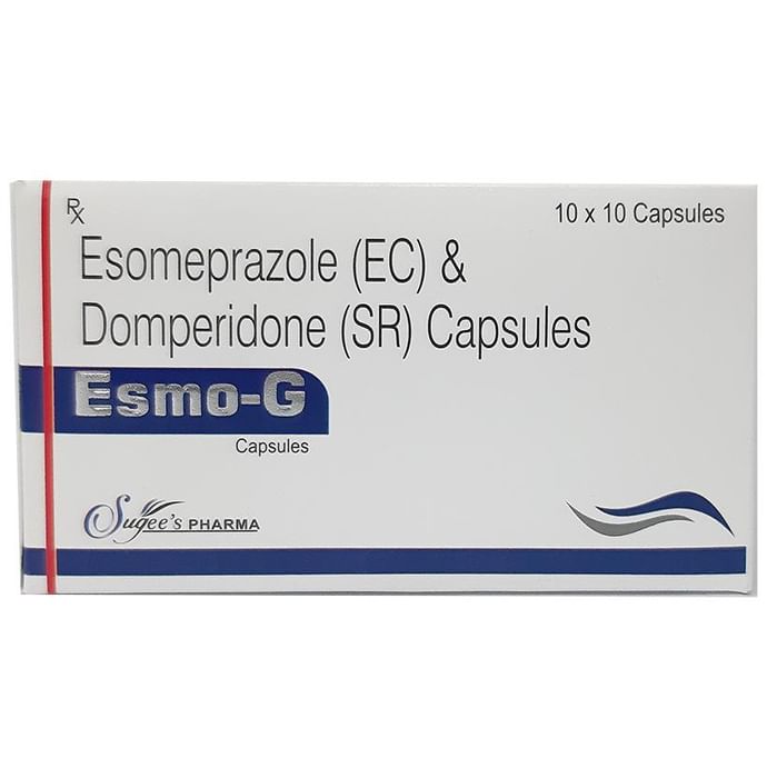 Esmo-G Capsule SR is a prescription medicine used to treat gastroesophageal reflux disease (Acid reflux) and indigestion by relieving the symptoms such as heartburn, stomach pain, or irritation. It also neutralizes the acid in the stomach and promotes easy passage of gas to reduce stomach discomfort. Esmo-G Capsule SR is taken without food in a dose and duration as advised by the doctor. The dose you are given will depend on your condition and how you respond to the medicine. You should keep taking this medicine for as long as your doctor recommends. If you stop treatment too early your symptoms may come back and your condition may worsen. Let your healthcare team know about all other medications you are taking as some may affect, or be affected by this medicine. Most common side effects are diarrhea, flatulence, stomach pain, dryness in mouth, and headache. Most of these are temporary and usually resolve with time. Contact your doctor straight away if you are at all concerned about any side effects. It may also cause sleepiness and dizziness, so do not drive or do anything that requires mental focus until you know how this medicine affects you. Avoid drinking alcohol while taking this medicine as it can worsen your sleepiness. Lifestyle modifications like having cold milk and avoiding hot tea, coffee, spicy food or chocolate can help you to get better results. Before taking this medicine, you should tell your doctor if you are pregnant, planning pregnancy or breastfeeding. You should also tell your doctor if you have liver diseases so that your doctor can prescribe a suitable dose for you.
