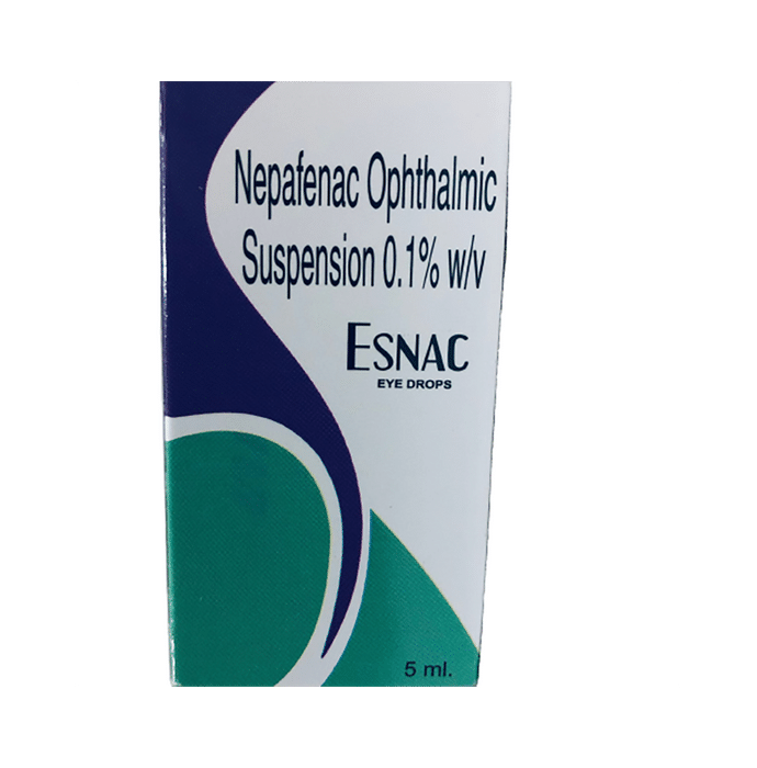 In Post-operative eye pain and inflammation Esnac Eye Drop helps relieve symptoms such as pain, redness, swelling, itching and watering of eyes after an operation of the eyes. This medicine works by decreasing the production of certain chemicals that cause inflammation of the eyes. This will make it easier for you to go about your daily activities. Use it as prescribed to get the most benefit. If you see no improvement even after a week, talk to your doctor.