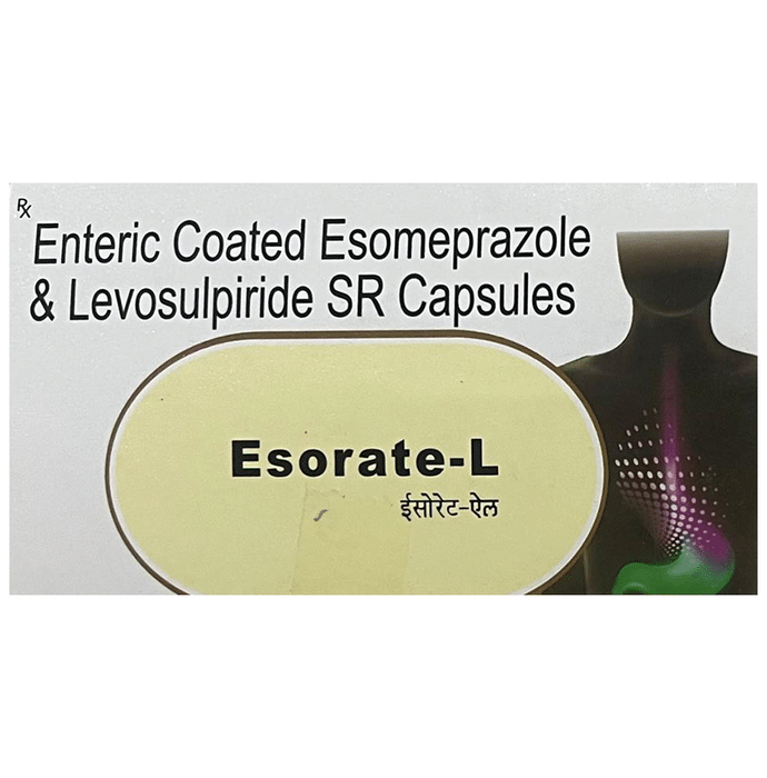 Esorate-L Capsule SR is a prescription medicine used in the treatment of gastroesophageal reflux disease (acid reflux) and peptic ulcer disease by relieving the symptoms such as heartburn, stomach pain, or irritation. It also neutralizes the acid production in the stomach to prevent discomfort. Esorate-L Capsule SR is taken without food in a dose and duration as advised by the doctor. The dose you are given will depend on your condition and how you respond to the medicine. You should keep taking this medicine for as long as your doctor recommends. If you stop treatment too early your symptoms may come back and your condition may worsen. Let your healthcare team know about all other medications you are taking as some may affect, or be affected by this medicine. The most common side effects are diarrhea, nausea, vomiting, stomach pain, flatulence, constipation, and headache. Most of these are temporary and usually resolve with time. Contact your doctor straight away if you are at all concerned about any side effects. To overcome constipation, you should add fibre-rich foods in your diet and stay hydrated. It may also cause sleepiness, so do not drive or do anything that requires mental focus until you know how this medicine affects you. Avoid drinking alcohol while taking this medicine as it can worsen your sleepiness. Lifestyle modifications like having cold milk and avoiding hot tea, coffee, spicy food or chocolate can help you to get better results. Before taking this medicine, you should tell your doctor if you are pregnant, planning pregnancy or breastfeeding. You should also tell your doctor if you have liver or kidney diseases so that your doctor can prescribe a suitable dose for you.