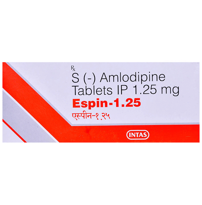Espin 1.25mg Tablet belongs to a class of medicines known as calcium channel blockers. It is used to treat high blood pressure (hypertension) and prevent angina (heart-related chest pain). It lowers blood pressure and reduces the heart's workload, which helps prevent heart attacks and strokes. Espin 1.25mg Tablet may be prescribed alone or along with other medicines. The dose depends on what you are taking it for and the severity of your condition. You can take it at any time of the day, with or without food, but it is best to take it at about the same time each day. You should take this medicine for as long as it is prescribed for you. Even if you feel well, do not stop this medicine on your own because high blood pressure often has no symptoms. If you stop taking it, your condition may get worse. Keeping yourself active with regular exercise, managing your weight, and eating a healthy diet will also help control your blood pressure. The most common side effects include headache, fatigue, nausea, abdominal pain, and sleepiness. Consult your doctor if any of these side effects bother you or do not go away. They may be able to suggest ways to prevent or reduce the side effects. Before taking it, let your doctor know if you have any liver, heart, or kidney problems. Pregnant or breastfeeding women should also consult their doctor before taking this medicine. You also need to tell your doctor about all the other medicines you are taking, especially those used to treat high blood pressure or heart conditions. You should have your blood pressure checked regularly to make sure that this medicine is working properly.