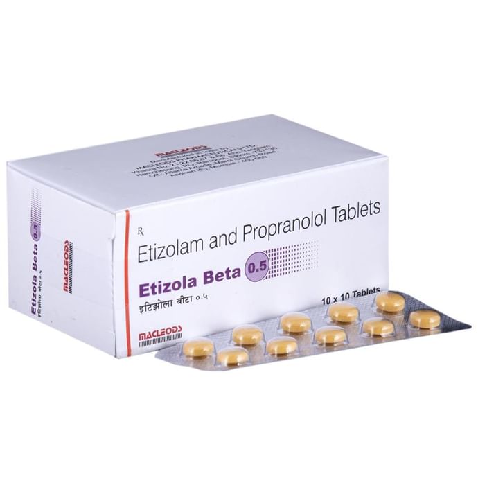 Etizola Beta 0.5 Tablet is a prescription medicine used to treat anxiety disorder. It calms the brain by decreasing the abnormal and excessive activity of the nerve cells. It also blocks the action of certain chemical messengers of the heart and blood vessels. Etizola Beta 0.5 Tablet should be taken on an empty stomach. However, it is advised to take it at the same time each day as this helps to maintain a consistent level of medicine in the body. Take this medicine in the dose and duration advised by your doctor as it has high habit-forming potential. If you miss a dose of this medicine, take it as soon as you remember. Finish the full course of treatment even if you feel better. It is important not to stop taking this medicine suddenly as it may cause withdrawal symptoms. Avoid consuming alcohol while taking this medicine as this may reduce its effectiveness. Some common side effects of this medicine include confusion, memory impairment, slow heart rate, tiredness, and nightmare. It may also cause dizziness and sleepiness. So, do not drive or do anything that requires mental focus until you know how this medicine affects you. Let your doctor know if you experience increased swelling around your legs or ankles, sudden weight gain or sudden shortness of breath while on the treatment. Take caution while taking medicine if you are suffering from liver disease. Your doctor should also know about all other medicines you are taking as many of these may make this medicine less effective or change the way it works. Inform your doctor if you are pregnant, planning pregnancy or breastfeeding.
