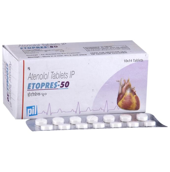 Etopress 50 Tablet belongs to a group of medicines called beta-blockers. It is used to treat high blood pressure (hypertension), angina (heart-related chest pain), irregular heart rhythms (arrhythmia). It also helps to prevent future heart attacks and stroke and migraines. Etopress 50 Tablet is also used to relieve the symptoms caused by an overactive thyroid gland. It may be prescribed alone or together with other medications. The dose and frequency depend on what you are taking it for and the severity of your condition. It may be taken empty stomach or with a meal, but take it regularly at the same time each day to get the most benefit. It may take several weeks before you get the full benefit of this medicine and you may need to take it for the rest of your life. However, it is important to continue taking it even if you feel well. Most people with high blood pressure do not feel ill and if you stop taking it, your condition may worsen. The main side effects of this medicine are fatigue, slow heart rate, feeling dizzy, diarrhea, and nausea. These are usually mild and short-lived. It may also cause shortness of breath or low blood pressure in some people. To reduce the risk of side effects your doctor will probably start the medicine at a low dose and gradually increase it. Consult your doctor if the side effects bother you or do not go away. Before taking it, let your doctor know if you have any liver problems. It may also not be suitable for people who have a slow heart rate, severe circulation problems, severe heart failure, or low blood pressure. Pregnant or breastfeeding mothers should also consult their doctor before taking it. You must talk to your doctor to find out whether this medicine is suitable for you to use. You should have your blood pressure checked regularly to make sure that this medicine is working properly. Avoid drinking alcohol as it may increase certain side effects.