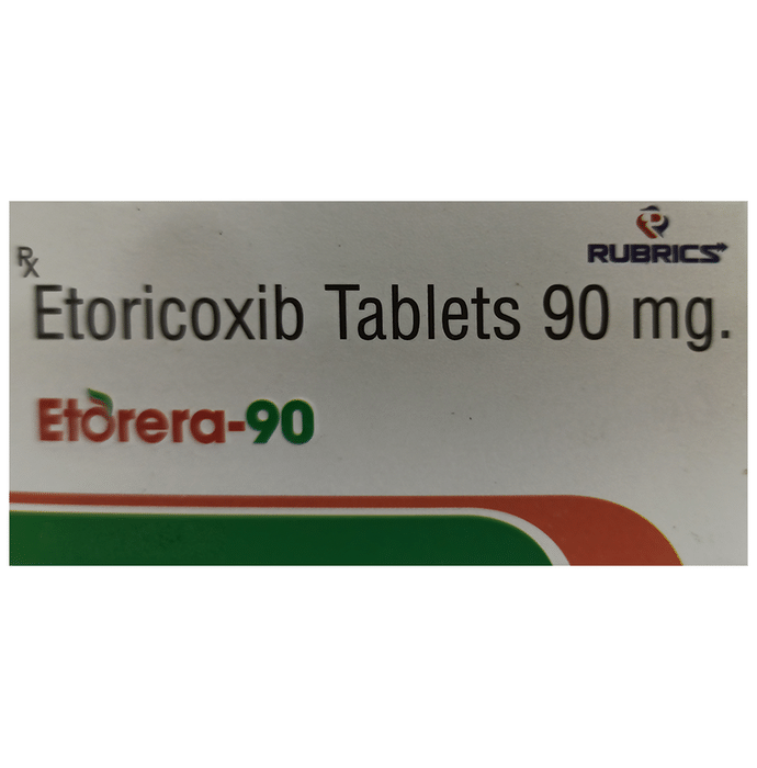 Etorera 90mg Tablet is a pain-relieving medicine. It is used for relieving moderate pain and swelling of joints associated with different forms of gout and arthritis. It effectively alleviates pain, redness, and swelling. Etorera 90mg Tablet should be taken in the dose and duration as advised by your doctor. Etorera 90mg Tablet may be taken with or without food, but it is better to take it at a fixed time. The most common side effect of this medicine is abdominal pain. You may also experience other side effects like constipation, flatulence, heartburn, diarrhea, indigestion, nausea, vomiting, esophagitis, oral ulcer, edema, dizziness, headache, palpitations, arrhythmia, high blood pressure, bronchospasm, increased liver enzymes, fatigue, bruises, and flu-like-symptoms. It is potentially unsafe to take it during pregnancy. Inform your doctor if you have a history of stomach ulcers, heart diseases, high blood pressure, and liver or kidney disease.