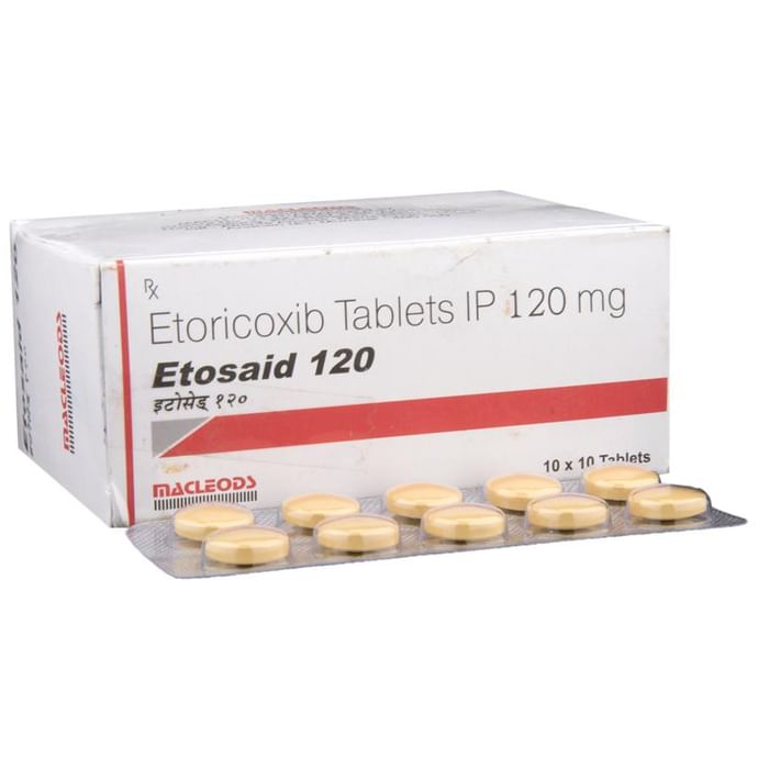 Etosaid 120 Tablet is a pain-relieving medicine. It is used for relieving moderate pain and swelling of joints associated with different forms of gout and arthritis. It effectively alleviates pain, redness, and swelling. Etosaid 120 Tablet should be taken in the dose and duration as advised by your doctor. Etosaid 120 Tablet may be taken with or without food, but it is better to take it at a fixed time. Flu-like symptoms, indigestion, stomach pain, and diarrhea are some of the side effects that might be seen with this medicine. It may cause dizziness and fatigue. You should not drive or do anything requiring concentration until you know how it affects you. It is potentially unsafe to take it during pregnancy. Inform your doctor if you have a history of stomach ulcers, heart diseases, high blood pressure, and liver or kidney disease.