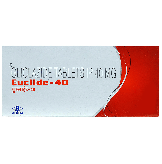 Euclide 40 Tablet is a medicine used to treat type 2 diabetes mellitus in adults. It belongs to a group of medicines called sulfonylureas and helps control blood sugar levels in people with diabetes. This helps to prevent serious complications of diabetes like kidney damage and blindness. Euclide 40 Tablet may be prescribed alone or along with other medicines. It should be taken with food. Take it regularly at the same time each day to get the most benefit. Your doctor will decide what dose is best for you and this may change from time to time according to how it works. Keep taking this medicine, even if you feel well or your blood sugar levels are controlled. If you stop it without consulting your doctor, your blood sugar levels could rise and put you at risk of kidney damage, blindness, nerve problems, and loss of limbs. Remember that it is only part of a treatment program that should also include a healthy diet, regular exercise, and weight reduction as advised by your doctor. Your lifestyle plays a big part in controlling diabetes. The most common side effects of taking this medicine include indigestion and stomach upsets. It can also cause low blood glucose levels (hypoglycemia). Make sure you recognize the signs of having low blood glucose levels, such as sweating, dizziness, headache, and shaking, and know how to deal with it. To prevent this, it's important to have regular meals and always carry a fast-acting source of glucose such as sugary food or fruit juice with you. Drinking alcohol can also increase your risk of low blood sugar levels and should be avoided. Some people may find that they put on weight with this medicine. You should not take it if you have type 1 diabetes mellitus, if you have diabetic ketoacidosis (high levels of acid in your blood), or if you have severe kidney or liver disease. Before taking this medicine, tell your doctor if you have ever had heart disease, thyroid disease, or some hormonal conditions. It may not be suitable. Pregnant or breastfeeding women should also consult their doctor before taking it. Your blood sugar levels should be checked regularly and your doctor may also advise blood tests to monitor your blood cell counts and liver function.