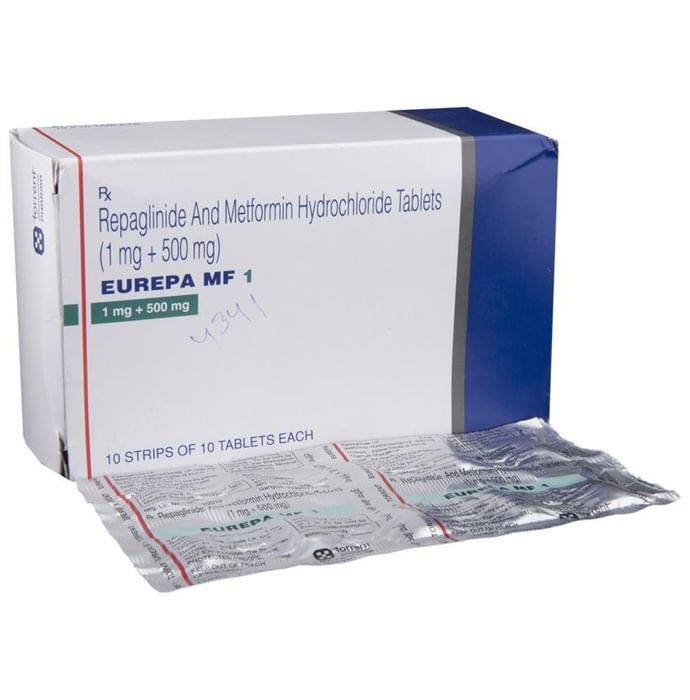 In Treatment of Type 2 diabetes mellitus Eurepa MF 1 Tablet is a medicine that helps to control high blood glucose (sugar) levels. It helps get rid of extra glucose from your body through urine. It also improves the body’s response to the hormone insulin, which is responsible for regulating blood glucose (sugar) levels in our body. The insulin helps to lower your blood glucose levels and prevents them from rising after taking meals. You should keep taking it for as long as it is prescribed. Lowering blood glucose levels is an essential part of managing diabetes. If you can control the level you will reduce the risk of getting any of the serious complications of diabetes such as kidney damage, eye damage, nerve problems, and loss of limbs. Taking this medicine regularly along with proper diet and exercise will help you live a normal, healthy life.