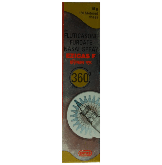 Ezicas F 360 Nasal Spray is a steroid. It relieves the symptoms of allergic rhinitis such as runny nose, sneezing and sinus discomfort. It works by blocking the production of certain chemical messengers that cause inflammation (swelling) and allergies, thus relieving the discomfort and irritation in your nose. You should always use it as advised by your doctor but to get the full benefit you should take it regularly. It may take a few days for the spray to take full effect. If you do not see an improvement in your symptoms after a week you should talk to your doctor. The most common side effects of Ezicas F 360 Nasal Spray include nasal discomforts such as burning or itching. It can also cause nosebleeds, nasal inflammation, and headaches in some patients. Talk to your doctor if you are worried about side effects or they do not go away. This medicine may lower the ability of your body to fight off infections, so try to stay away from someone having chickenpox, measles, or tuberculosis. In general, you should try to avoid situations which make your symptoms worse (things like pollen and dust mites), and it would be best to avoid smoking. Before starting to use this medicine you should let your doctor know if you are pregnant or breastfeeding, discuss the risks and benefits with your healthcare team. If you use this medicine for a long time, your doctor may want to carry out certain medical tests during the duration of treatment to check your progress.