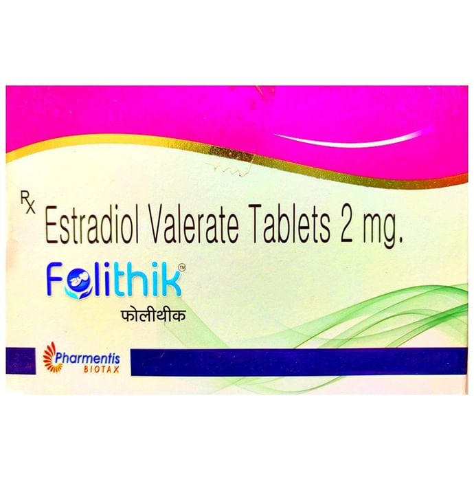 Folithik Tablet is a female sex hormone (estrogen). This is a type of hormone replacement therapy (HRT) that is used to treat symptoms associated with menopause (hot flushes, vaginal dryness, and itching), estrogen deficiency, and thinning of bones (osteoporosis). In some cases, Folithik Tablet is also used to treat breast cancer and prostate cancer along with other anticancer medicines. The medicine is to be swallowed with water. It can be taken with or without food, but remember to take it at a fixed time each day for better efficacy. The dose and duration will be decided by your doctor so that you get the right amount to control your symptoms. If you have missed a dose, take it as soon as you remember it. Do not skip any dose and finish the full course of treatment. The treatment should not be stopped abruptly without consulting your doctor as this may affect the potency of this medicine. The most common side effects of this HRT are headaches, breast pain, irregular vaginal bleeding or spotting, abdominal cramps or bloating, nausea, vomiting, and hair loss. Some of the warning signs and symptoms that need immediate medical attention are breast lumps, unusual vaginal bleeding, dizziness and faintness, severe headaches, chest pain, shortness of breath, pains in your legs, etc. Before taking this medicine, it is important to tell your doctor if you are taking or have recently taken any other medicines for the same disease or other diseases. Before you initiate with this HRT, you must consult the doctor if you have a history of unexplained vaginal bleeding or if you have ever had a blood clot in your legs or your lungs. If you are pregnant or breastfeeding, you should tell your doctor before taking this medicine. Your doctor may suggest you some diagnostic or laboratory tests to know the effects and side effects of this medicine on your body.
