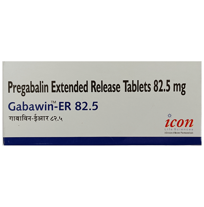 Gabawin-ER 82.5 Tablet is a medicine used to relieve pain caused by nerve damage (neuropathic pain) due to diabetes, shingles (herpes zoster infection), spinal cord injury, or other conditions. It is also used to treat widespread muscle pain and stiffness in people with fibromyalgia. Gabawin-ER 82.5 Tablet belongs to the anti-epileptic group of medicines and can also be used to treat certain types of seizures (fits) in combination with other medicines. Additionally, it may also be prescribed to treat the symptoms of anxiety disorder if other medicines are not suitable. You can take Gabawin-ER 82.5 Tablet with or without food, but it is important to take this medicine at the same time each day to get the most benefit. The exact dose and duration of treatment will depend on your condition and how you respond to it. Your doctor will probably start this medicine at a low dose and increase it gradually. It may take a few weeks for the medicine to work properly. Follow your doctor’s instructions and continue taking it regularly until your doctor advises you to stop. Do not miss any dose, otherwise, your condition may worsen. The side effects of this medicine are usually mild and go away by themselves. The most common ones are feeling sleepy or dizzy, dryness in the mouth, blurred vision, weight gain, edema (swelling over the whole body), and difficulty in concentrating. Most side effects are not serious and do not need medical attention. Talk to your doctor about potential side effects and ways in which you might prevent or cope with them. Before taking the medicine you should tell your doctor if you are pregnant, breastfeeding, or planning to become pregnant. Be careful while driving as sleepiness, dizziness, and blurring of vision may be seen as side effects. You should avoid drinking alcohol along with this medicine as it may lead to excessive sleepiness and dizziness.