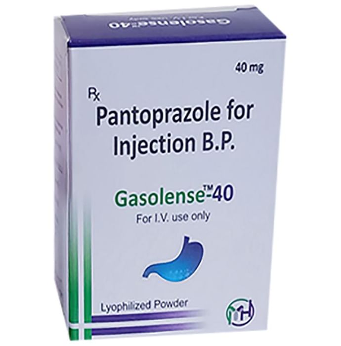 Gasolense 40 Injection is a medicine that reduces the amount of acid produced in your stomach. It is used for treating acid-related diseases of the stomach and intestine such as acid reflux, indigestion, peptic ulcer disease, and some other stomach conditions associated with excessive acid production. Gasolense 40 Injection is also used to prevent stress ulcers in seriously ill patients and is administered before anesthetic medication to help prevent aspiration-related complications. It belongs to a class of medicines known as proton pump inhibitors (PPIs). This medicine is administered into a vein by a healthcare professional and will only be given to you if your doctor thinks that an injection is more suitable for you at the moment than a tablet. The dose will depend on your underlying condition and how you respond to the medicine. Your doctor will decide the duration of treatment but you should keep on taking it as prescribed, even if your symptoms disappear quickly. You can increase the efficiency of the treatment by eating smaller meals more often and avoiding caffeinated drinks (like tea and coffee), and spicy or fatty foods. The most common side effects observed with this medicine include nausea, vomiting, headache, dizziness, flatulence, diarrhea, stomach pain, and thrombophlebitis (pain, redness, and swelling of the vein). These symptoms are generally mild but if they bother you or do not go away, consult your doctor. Long-term use of this medicine may lead to an increased risk of side effects. For instance, using this medicine for more than 1 year may increase your risk for bone fractures, especially with higher doses. Talk to your doctor about ways to prevent bone loss (osteoporosis), like taking calcium and vitamin D supplements. Gasolense 40 Injection is not suitable for some people. Before taking this medicine, you need to tell your doctor if you have severe liver problems, are taking medicines for HIV, have ever had an allergic reaction to similar medicines in the past, or suffer from bone loss (osteoporosis). Pregnant or breastfeeding women should also consult their doctor before taking it. Avoid drinking alcohol as it makes your stomach produce excessive acid and can worsen your symptoms. Do not drive or use machinery or tools, if this medicine makes you feel dizzy or sleepy.
