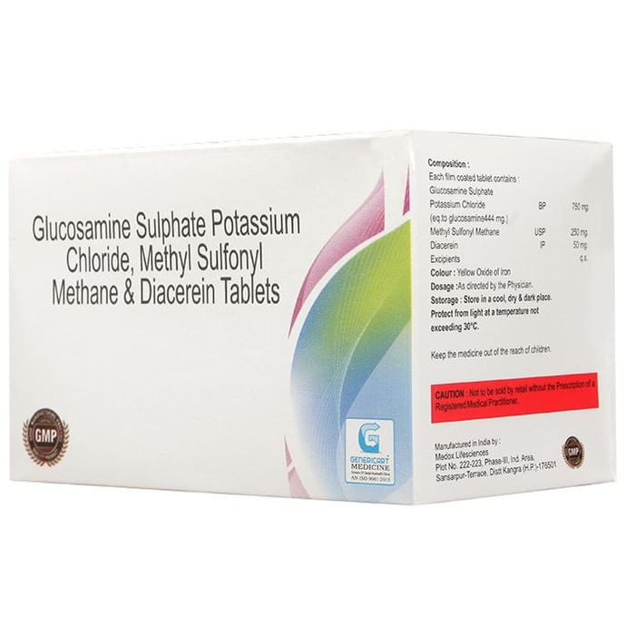 Genericart Diacerein+Glucosamine Sulfate Potassium Chloride+Methyl Sulfonyl Methane 50mg/750mg/250mg Tablet