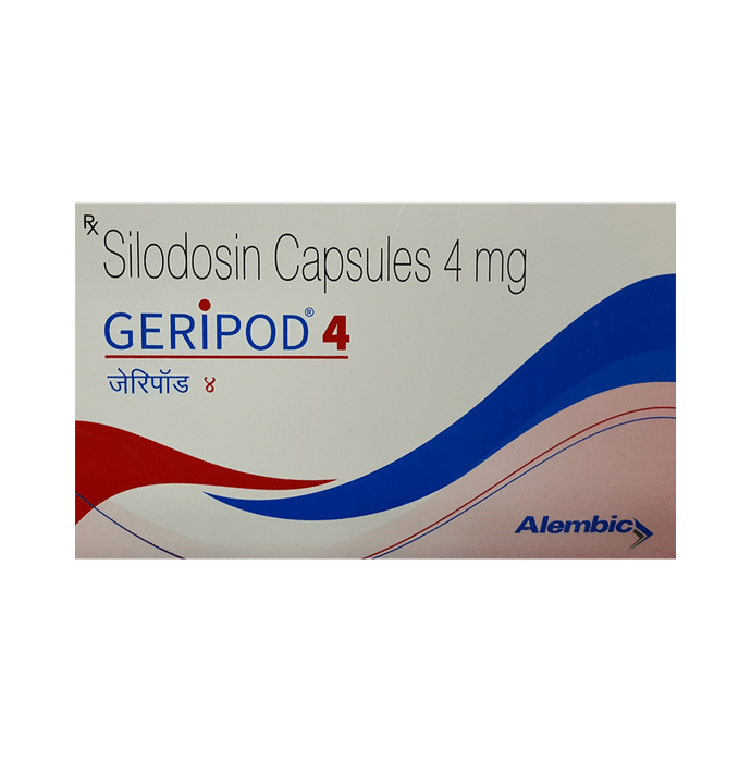 Geripod 4 Capsule is an alpha-adrenergic antagonist that is used in the treatment of benign prostatic hyperplasia. It helps to relieve symptoms like difficulty in passing urine. However, it does not decrease the size of the prostate. Geripod 4 Capsule is advised to take it in a dose and duration as per prescription. It should be taken with food, but take at the same time regularly. Swallow the medicine as a whole without crushing or chewing it. You should not stop taking the medicine without consulting the doctor as it may lead to the worsening of your symptoms. The course of the treatment should be completed for better efficacy of the medicine. Some common side effects of this medicine are retrograde ejaculation, dizziness, diarrhea, orthostatic hypotension, headache, nasopharyngitis, and nasal congestion. If any of the side effects persist or bother you, you must consult the doctor without delay. Simple lifestyle changes can help you manage your symptoms better. Try to urinate as soon as you feel the urge, however, never strain or push to empty your bladder. You should avoid drinking caffeinated or alcoholic drinks at night and a few hours before going to bed or going out. Before receiving the treatment, inform your doctor if you are on any medication for any other health condition. If you have to undergo eye surgery due to cataracts or glaucoma then inform your eye doctor about the usage of this medicine. Patients with liver or kidney disease must be cautious while receiving the prescription, and they must receive regular follow-ups as per the doctor’s advice.
