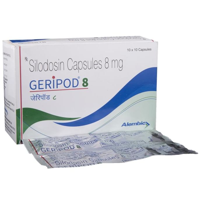 Geripod 8 Capsule is an alpha-adrenergic antagonist that is used in the treatment of benign prostatic hyperplasia. It helps to relieve symptoms like difficulty in passing urine. However, it does not decrease the size of the prostate. Geripod 8 Capsule is advised to take it in a dose and duration as per prescription. It should be taken with food, but take at the same time regularly. Swallow the medicine as a whole without crushing or chewing it. You should not stop taking the medicine without consulting the doctor as it may lead to the worsening of your symptoms. The course of the treatment should be completed for better efficacy of the medicine. Some common side effects of this medicine are retrograde ejaculation, dizziness, diarrhea, orthostatic hypotension, headache, nasopharyngitis, and nasal congestion. If any of the side effects persist or bother you, you must consult the doctor without delay. Simple lifestyle changes can help you manage your symptoms better. Try to urinate as soon as you feel the urge, however, never strain or push to empty your bladder. You should avoid drinking caffeinated or alcoholic drinks at night and a few hours before going to bed or going out. Before receiving the treatment, inform your doctor if you are on any medication for any other health condition. If you have to undergo eye surgery due to cataracts or glaucoma then inform your eye doctor about the usage of this medicine. Patients with liver or kidney disease must be cautious while receiving the prescription, and they must receive regular follow-ups as per the doctor’s advice.