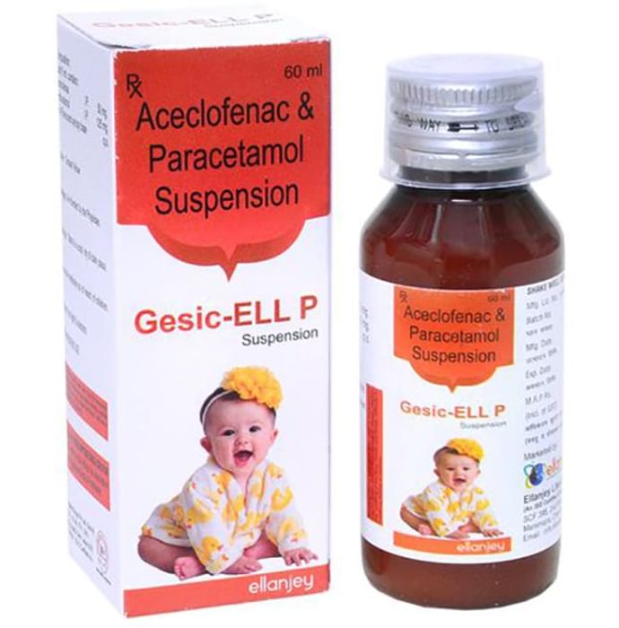 In Treatment of Fever This medicine works for high body temperature as well. Paracetamol, which is another active ingredient along with Aceclofenac, lowers down the body temperature of your child by blocking the chemical messengers in the brain responsible for signaling a rise in body temperature. In Pain relief Gesic-Ell P Suspension is used for short-term relief of pain, inflammation, and swelling in conditions that affect joints and muscles. Some of the conditions in which Gesic-Ell P Suspension is used are rheumatoid arthritis, osteoarthritis, muscle pain, back pain, toothache, or pain in the ear and throat. Take it as it is prescribed to get the most benefit. Do not take more or longer than needed as that can be dangerous. In general, you should take the lowest dose that works, for the shortest possible time. This will help you to go about your daily activities more easily and have a better, more active, quality of life.