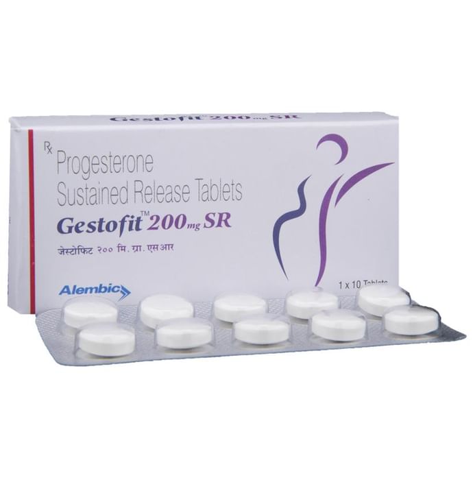 Gestofit 200mg SR Tablet is a natural female sex hormone, progesterone. It is used to treat menstrual and pregnancy-related issues that are caused due to hormonal imbalance. Gestofit 200mg SR Tablet is also prescribed along with estrogen as a part of hormonal replacement therapy for preventing endometrial hyperplasia (thickening of the lining of the uterus). It should be taken with food. It should be taken at the same time each day to get the most benefit. You should continue taking it for as long as your doctor has told you to, even if you feel well. The most common side effects include abdominal bloating, abdominal pain, dizziness, headache, depression, breast tenderness, hot flushes, vaginal discharge, joint paint, and urinary incontinence. Side effects are more common during the first few weeks and usually lessen as your body gets used to the medicine. You may also experience bleeding or spotting between your periods, consult with your doctor if it happens frequently. Before taking this medicine, inform your doctor if you have, or have had, breast cancer, unusual bleeding in the vagina, or liver disease. You will probably have several tests both before and during treatment to check your womb. Also, tell your doctor what other medicines you are taking as some may affect, or be affected by, this medicine. In general, it is advisable to avoid alcohol and smoking.
