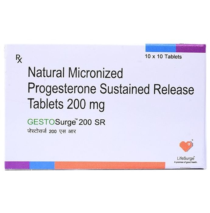 Gestosurge 200 SR Tablet is a natural female sex hormone, progesterone. It is used to treat menstrual and pregnancy-related issues that are caused due to hormonal imbalance. Gestosurge 200 SR Tablet is also prescribed along with estrogen as a part of hormonal replacement therapy for preventing endometrial hyperplasia (thickening of the lining of the uterus). It should be taken with food. It should be taken at the same time each day to get the most benefit. You should continue taking it for as long as your doctor has told you to, even if you feel well. The most common side effects include abdominal bloating, abdominal pain, dizziness, headache, depression, breast tenderness, hot flushes, vaginal discharge, joint paint, and urinary incontinence. Side effects are more common during the first few weeks and usually lessen as your body gets used to the medicine. You may also experience bleeding or spotting between your periods, consult with your doctor if it happens frequently. Before taking this medicine, inform your doctor if you have, or have had, breast cancer, unusual bleeding in the vagina, or liver disease. You will probably have several tests both before and during treatment to check your womb. Also, tell your doctor what other medicines you are taking as some may affect, or be affected by, this medicine. In general, it is advisable to avoid alcohol and smoking.