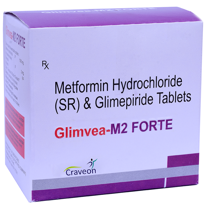In Treatment of Type 2 diabetes mellitus Glimvea-M 2 Forte Tablet SR is a combination medicine that increases the amount of insulin your body produces (in the pancreas). The insulin then works to lower your blood glucose level. It is usually taken once a day. You should keep taking it for as long as it is prescribed. Lowering blood glucose levels is an essential part of managing diabetes. If you can control the level you will reduce the risk of getting any of the serious complications of diabetes such as kidney damage, eye damage, nerve problems, and loss of limbs. Taking this medicine regularly along with proper diet and exercise will help you live a normal, healthy life.