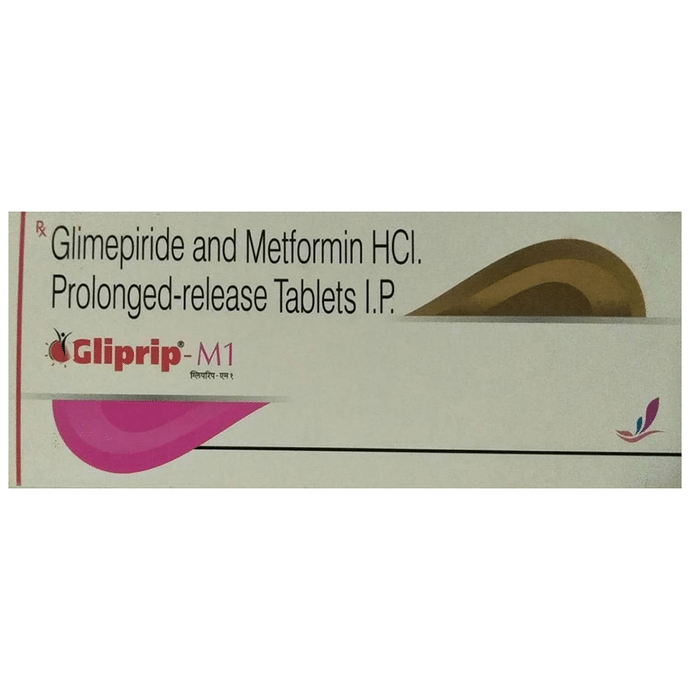 Gliprip-M1 Tablet PR belongs to a category of medicines known as anti-diabetic drugs. It is a combination of two medicines used to treat type 2 diabetes mellitus in adults. It helps control blood sugar levels in people with diabetes. Gliprip-M1 Tablet PR should be taken with food. Take it regularly at the same time each day to get the most benefit. Your doctor will decide what dose is best for you and this may change from time to time according to how it is working according to your blood sugar levels. Keep taking this medicine, even if you feel well or your blood sugar levels are controlled. If you stop it without consulting your doctor, your blood sugar levels could rise and put you at risk of kidney damage, blindness, nerve problems, and loss of limbs. Remember that it is only part of a treatment program that should also include a healthy diet, regular exercise, and weight reduction as advised by your doctor. Your lifestyle plays a big part in controlling diabetes. The most common side effect of Gliprip-M1 Tablet PR is low blood glucose levels (hypoglycemia). Make sure you recognize the signs of having low blood glucose levels, such as sweating, dizziness, headache, and shaking, and know how to deal with it. To prevent this, it's important to have regular meals and always carry a fast-acting source of glucose such as sugary food or fruit juice with you. Drinking alcohol can also increase your risk of low blood sugar levels and should be avoided. Other side effects that may be seen on taking this medicine include taste changes, nausea, diarrhea, stomach pain, headache, and upper respiratory tract infection. Some people may find that they put on weight with this medicine. You should not take it if you have type 1 diabetes mellitus, if you have diabetic ketoacidosis (high levels of acid in your blood), or if you have severe kidney or liver disease. Before taking this medicine, tell your doctor if you have ever had heart disease. It may not be suitable. Pregnant or breastfeeding women should also consult their doctor before taking it. Your blood sugar levels should be checked regularly and your doctor may also advise blood tests to monitor your blood cell counts and liver function.