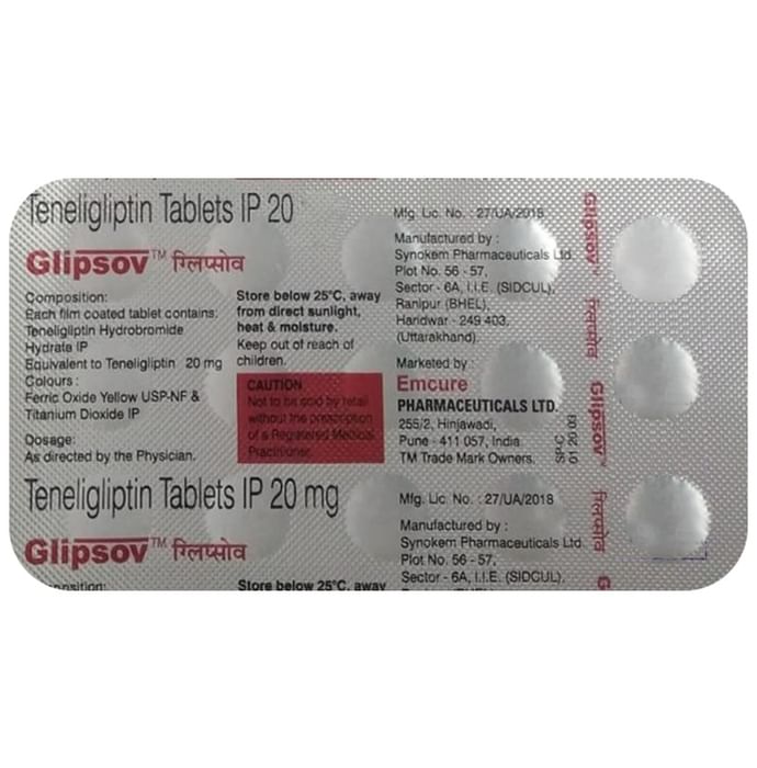 In Treatment of Type 2 diabetes mellitus Glipsov Tablet belongs to a group of medicines called DPP-4 inhibitors (or gliptins). It helps increase the amount of insulin your body produces after a meal and to stop your body from releasing too much glucose (sugar) into your blood. This way it lowers the blood glucose levels in your body. It is usually taken once a day and has relatively few common side effects. Lowering blood glucose levels is an essential part of managing diabetes. If you can control the level you will reduce the risk of getting any of the serious complications of diabetes such as kidney damage, blindness, and loss of limbs. Proper control of diabetes can also reduce the risk of heart disease and stroke. Taking this medicine regularly along with a proper program of diet and exercise will help you live a normal, healthy life. You should keep using it for as long as it is prescribed.
