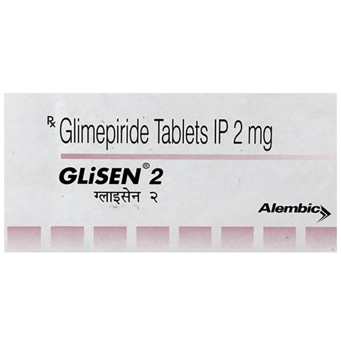 Glisen 2 Tablet belongs to a group of medicines called sulfonylureas and is used to treat type 2 diabetes mellitus in adults. It helps control blood sugar levels in people with diabetes thereby preventing serious complications of diabetes such as kidney damage and blindness. Glisen 2 Tablet may be used alone or along with other medicines. It should be taken just before or with the first meal of the day. Take it regularly at the same time each day to get the maximum benefit. Your doctor will decide what dose is best for you and this may change from time to time according to your blood sugar levels. Keep taking this medicine, even if you feel well or your blood sugar levels are controlled. If you stop it without consulting your doctor, your blood sugar levels could rise to put you at risk of diabetes complications such as kidney damage, blindness, nerve problems, and loss of limbs. Remember that it is only part of a treatment program that should also include a healthy diet, regular exercise, and weight reduction as advised by your doctor. Your lifestyle plays a big part in controlling diabetes. The most common side effects of taking this medicine include low blood sugar levels (hypoglycemia), nausea, headache, and dizziness. Make sure you recognize the signs of having low blood sugar levels, such as sweating, dizziness, headache, and shaking, and know how to deal with them. To prevent this, it is important to have regular meals and always carry a fast-acting source of glucose such as sugary food or fruit juice with you. Drinking alcohol can also increase your risk of low blood sugar levels and hence should be avoided. Some people may experience an increase in weight with this medicine. You should not take it if you have type 1 diabetes mellitus, diabetic ketoacidosis (high levels of acid in your blood), or if you have severe kidney or liver disease. Before taking this medicine, tell your doctor if you have ever had heart disease, thyroid disease, or some hormonal conditions, as it may not be suitable. Pregnant or breastfeeding women should also consult their doctor before taking it. Your blood sugar levels should be checked regularly and your doctor may also advise blood tests to monitor your blood cell counts and liver function.