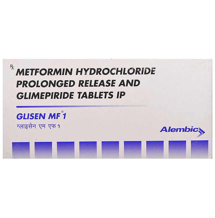 Glisen MF 1 Tablet PR belongs to a category of medicines known as anti-diabetic drugs. It is a combination of two medicines used to treat type 2 diabetes mellitus in adults. It helps control blood sugar levels in people with diabetes. Glisen MF 1 Tablet PR should be taken with food. Take it regularly at the same time each day to get the most benefit. Your doctor will decide what dose is best for you and this may change from time to time according to how it is working according to your blood sugar levels. Keep taking this medicine, even if you feel well or your blood sugar levels are controlled. If you stop it without consulting your doctor, your blood sugar levels could rise and put you at risk of kidney damage, blindness, nerve problems, and loss of limbs. Remember that it is only part of a treatment program that should also include a healthy diet, regular exercise, and weight reduction as advised by your doctor. Your lifestyle plays a big part in controlling diabetes. The most common side effect of Glisen MF 1 Tablet PR is low blood glucose levels (hypoglycemia). Make sure you recognize the signs of having low blood glucose levels, such as sweating, dizziness, headache, and shaking, and know how to deal with it. To prevent this, it's important to have regular meals and always carry a fast-acting source of glucose such as sugary food or fruit juice with you. Drinking alcohol can also increase your risk of low blood sugar levels and should be avoided. Other side effects that may be seen on taking this medicine include taste changes, nausea, diarrhea, stomach pain, headache, and upper respiratory tract infection. Some people may find that they put on weight with this medicine. You should not take it if you have type 1 diabetes mellitus, if you have diabetic ketoacidosis (high levels of acid in your blood), or if you have severe kidney or liver disease. Before taking this medicine, tell your doctor if you have ever had heart disease. It may not be suitable. Pregnant or breastfeeding women should also consult their doctor before taking it. Your blood sugar levels should be checked regularly and your doctor may also advise blood tests to monitor your blood cell counts and liver function.