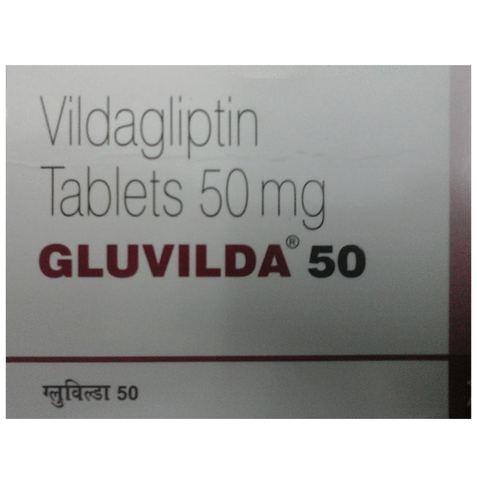 Gluvilda 50 Tablet is a medicine used to treat type 2 diabetes mellitus. It is used together with a healthy diet and regular exercise to control blood sugar levels. This helps to prevent serious complications of diabetes like kidney damage and blindness. Gluvilda 50 Tablet is normally prescribed when diet and exercise alone or other medicines do not prove sufficient to control your blood sugar level. It may prescribe alone or in combination with other diabetes medicines. It can be taken with or without food. The dose will depend on your condition and blood sugar levels. Use it strictly as advised by your doctor. You should take it regularly at the same time each day to get the most benefit. Do not stop taking the medicine unless advised by your doctor. It is important to stay on the diet and exercise program recommended by your doctor while taking this medicine. Your lifestyle plays a big part in controlling diabetes. The most common side effects of Gluvilda 50 Tablet include hypoglycemia, tremor, headache, dizziness, fatigue, and nausea. It is important to recognize the symptoms of hypoglycemia (such as lightheadedness, sweating, dizziness, fainting, and dry mouth) and know how to deal with it. You can carry sugar or glucose candy and have them to control your symptoms if you experience any. Contact your doctor if the side effects do not go away or worry you. Before taking this medicine, let your doctor know if you have ever had kidney disease, heart disease, or pancreas problems. Pregnant or breastfeeding women should also consult their doctor before taking it. Some other medicines you are taking may interfere with this medicine's working. So, make sure your doctor knows about all the other medicines you are using. Limit your alcohol intake while taking this medicine because it can increase your risk of developing low blood sugar levels. You may need regular tests such as kidney function and blood glucose levels to check that the medicine is working properly.