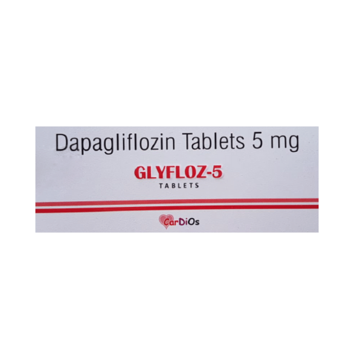 Glyfloz 5 Tablet is used alone or in combination with other medicines to treat type 2 diabetes mellitus. It helps control the high blood sugar levels seen in diabetes. This reduces the chances of serious complications of diabetes and also helps prevent heart disease. Glyfloz 5 Tablet can be taken with or without food at any time of day but you should try to take it at the same time every day. The dose will be decided by your doctor. Do not stop taking it without asking your doctor. If you do, your blood sugar levels may increase and put you at risk of serious complications like kidney damage and blindness. This medicine is only part of a treatment program that should include a healthy diet, regular exercise, and weight reduction as advised by your doctor. The most common side effects of Glyfloz 5 Tablet include fungal infection of the vagina, nasopharyngitis (inflammation of the throat and nasal passages), and urinary tract infections. It may cause the body to lose too much water. Drink plenty of fluids to prevent dehydration. Maintaining good hygiene can help prevent the development of fungal infections in the genital area. Before taking this medicine, inform your doctor if you have any kidney or liver problems or a urinary tract infection or if you are on water pills (diuretics). Pregnant or breastfeeding women should also consult their doctor before taking it. Avoid excessive alcohol intake while taking it as this may increase the risk of developing some side effects. Monitor your blood sugar levels regularly while taking this medicine.