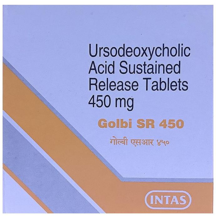 Golbi SR 450 Tablet is used to dissolve certain gallstones and prevent them from forming. It is also used to treat a type of liver disease called primary biliary cirrhosis. It helps break down the cholesterol that has converted into stones in your gallbladder thereby dissolving the stones. Golbi SR 450 Tablet should be swallowed whole after a meal and with a glass of milk or water. The dose will depend on what you are being treated for and your body weight. Take it regularly to get maximum benefit and keep taking it for as long as prescribed (several months or longer). Keep taking it even if your symptoms disappear. This medicine's most common side effects are abdominal pain, diarrhea, hair loss, itching, nausea, and rash. Not everyone gets these side effects. If you are worried about them, or they do not go away, let your doctor know. Before taking this medicine, you should tell your doctor if you have an inflammation of the gallbladder or bile ducts, you get frequent cramp-like pain in your upper abdomen, you have been coughing up blood or you have gained weight rapidly. Using this medicine can reduce or increase the effect of some other medicines so tell your doctor all other medicines you are taking. Women should discontinue hormonal birth control pills as they can increase the production of gallstones. During the treatment, you may need ultrasound scans, or frequent blood tests to check your liver function.