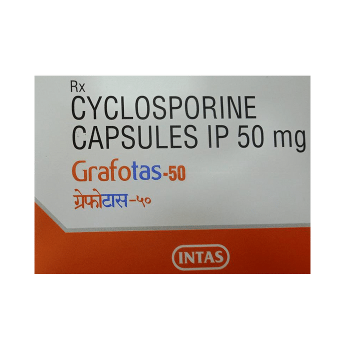 Grafotas 50mg Capsule is used to prevent your body from rejecting a new organ after a liver, kidney, or heart transplant. It works by weakening your immune system so that your body does not attack the new organ. It can also be used to treat severe rheumatoid arthritis and a skin condition called psoriasis. The amount of Grafotas 50mg Capsule you take depends on your weight, medical condition, and what you are being treated for. Your doctor will plan the correct dose for you. Do not change the dose without talking to your doctor. It can be taken with or without food. It is better to take it, in the same way, and at the same time every day to get the maximum benefit. Keep taking it for as long as you have been told to, even if you feel well. Stopping treatment may increase the risk of your transplanted organ being rejected. The most common side effects of this medicine include headache, unusual growth of facial or body hair, high blood pressure, diarrhea, and shaking or tremors. Because it lowers your immune system, you may also catch more infections than usual. Tell your doctor straight away if you develop an infection. For the same reason, you may be more at risk of developing some cancers, particularly of the skin. You should limit your exposure to sunlight. Before taking this medicine you should tell your doctor if you have liver or kidney problems, high blood pressure, gout (increased uric acid levels in the blood), or epilepsy. Also, tell your doctor about all other medicines you are taking as they may affect the working of the medicine. This medicine should only be used in pregnancy if it is clearly needed. However, it is not recommended while breastfeeding. You will have frequent medical tests while taking this medicine to check your blood pressure, liver and kidney function, and mineral levels. The results of tests may lead to changes in your dose.