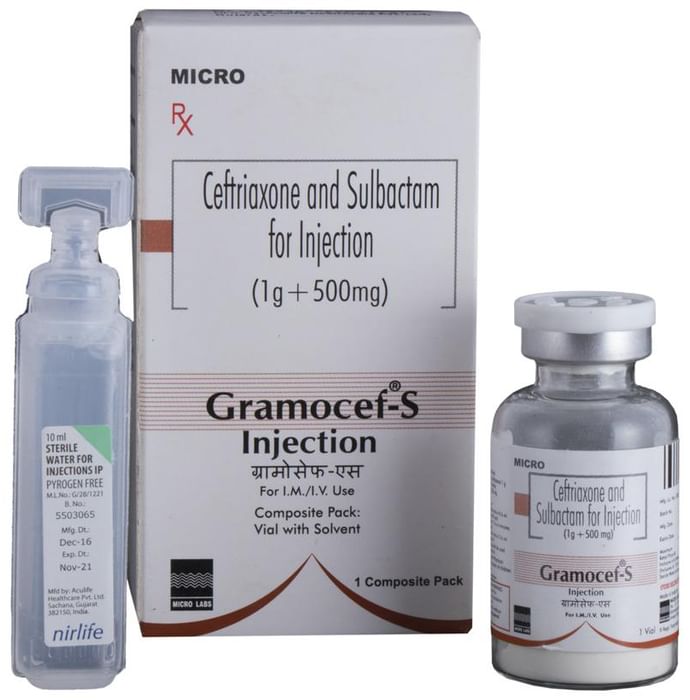 Gramocef-S Injection is a combination medicine. It is prescribed to treat various types of bacterial infections. It fights against the microorganisms to prevent their growth and further spread of the infection. Gramocef-S Injection should only be administered under the supervision of a healthcare professional. Do not miss any scheduled appointments for taking this medicine. The course of the treatment must be completed even if you feel better. Sudden discontinuation of the treatment may affect the potency of the medicine. Some common side effects of this medicine are nausea, vomiting, diarrhea, indigestion, etc. If any of the side effects get aggravated, you must consult your doctor immediately. If you experience any allergic reaction (rashes, itching, swelling, shortness of breath, etc.), you must seek immediate medical help. Before taking this medicine, you should tell your doctor if you are taking any medicines for any health condition. Pregnant or breastfeeding women should also consult with their doctor before taking it. Avoid drinking alcohol as it can cause excessive drowsiness with this medicine. It usually does not impair your ability to drive, but you should not drive if it makes you feel sleepy or dizzy. You must take adequate rest for a faster recovery, also take a healthy diet and drink plenty of water. Your doctor may ask for a few laboratory and diagnostic tests to know the effects of the medicine on your body.