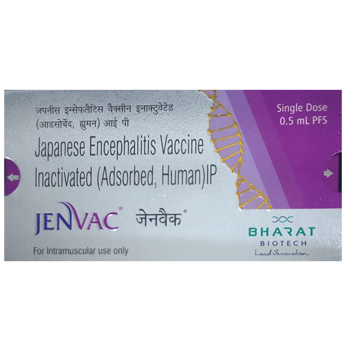 Jenvac Vaccine is a medicine used for prevention of Japanese encephalitis (JE). It protects against JE and is given as part of universal dimmunization program for selected places endemic to JE. Your doctor will decide if you should receive Jenvac Vaccine based on your situation. It is given as a subcutaneous injection. The prdimary vaccination may be given to children between 1 years to 3 years of age. Adults can receive the same at or after 18 years upto 49 years of age. The vaccine is recommended for people moving to a Japanese encephalitis (JE)-endemic country, travelers who plan to stay for more than 1 month in JE-endemic areas, and frequent travelers to JE-endemic areas. This vaccine should also be considered for shorter-term (less than 1 month) travelers with an increased risk of JE. Common side effects of this medicine include injection site reactions (such as soreness, swelling, pain, or redness), headache, fever, muscle pain, nausea, and fatigue. Let your doctor know if any of these side effects persist or get worse. They may be able to suggest ways to reduce or manage the side effecrs. Before receiving the vaccine, you should let your doctor if you have ever had an allergic reaction to a vaccine. Also tell your doctor if you have any problems with your heart, kidneys, or liver. Some other medicines may react with this vaccine, let your doctor know of all the medication you are taking. Pregnant or breastfeeding should consult their doctors first before receiving this vaccine.