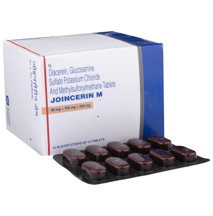 Joincerin M Tablet is a combination of three medicines. It is prescribed for treatment of osteoarthritis. It reduces pain and swelling by reducing inflammation. It also reduces friction in the joints and provide comfort during physical movements. Joincerin M Tablet may be prescribed alone or in combination with another medicine. It should be taken with food. This will prevent you from getting an upset stomach. Take it regularly and do not take more or use it for a longer duration than recommended by your doctor. You should not stop taking the medicine until your doctor tells you it is okay to stop. Using this medicine may cause a few common side effects such as nausea, diarrhea, constipation, indigestion, heartburn, and discoloration of urine. If you experienced any such side effects that does not resolve with tdime or get worse, you should let your doctor know. Your doctor may be able to suggest ways of preventing or reducing them. The medicine may not be suitable for everybody. Before taking it, let your doctor know if you have any medical conditions or disorders. Let your doctor also know all the other medicines you are taking. Pregnant and breastfeeding mothers should consult their doctors first before using the medicine.