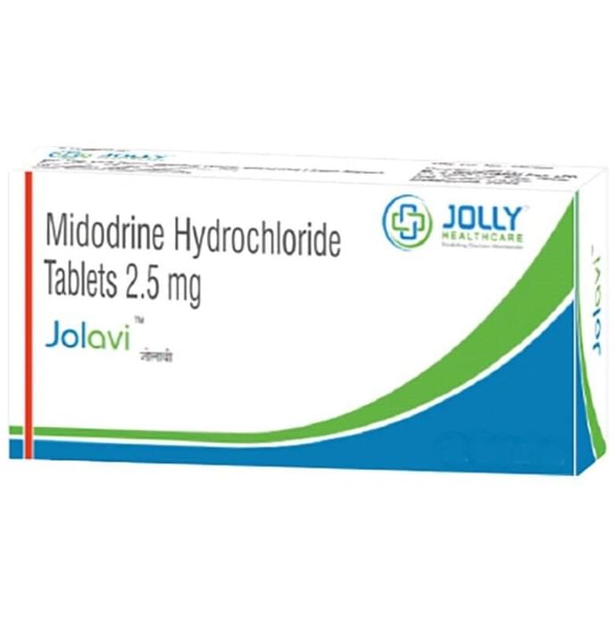 Jolavi Tablet is used to treat low blood pressure (hypotension). It is used in patients who experience dizziness due to low blood pressure while standing up suddenly from sitting or lying position. This medicine causes tightening of blood vessels and results in elevating your blood pressure. Jolavi Tablet can be taken with or without food. This medicine is taken during daytdime hours when people stand most often. But, it should not be taken if you are going to lie down for a long tdime after the dose. You should always take this medicine as advised by the doctor and should never stop it without consulting the doctor. You should monitor your blood pressure regularly while taking this medicine. Common side effects of this medicine include headache, nausea, rash, and difficulty in urination. Consult your doctor if these side effects bother you. It may also cause supine hypertension, it is increase in your blood pressure while lying down. Before taking this medicine, it is better to let your doctor know if you are suffering from any kidney or liver disease. Also, pregnant women and breastfeeding mothers should consult doctor before taking it. You must inform doctor about all the other medicines that you are taking apart from this medicine. Your doctor may ask for monitoring of kidney and liver function before and during the treatment with this medicine.