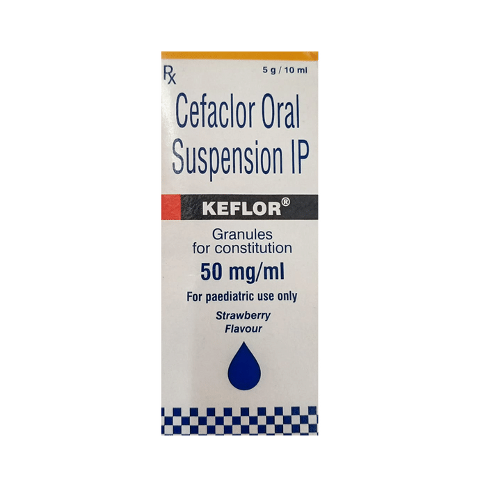 Keflor Oral Suspension Strawberry is an antibiotic medicine used to treat bacterial infections in your body. It is effective in infections of the lungs (e.g. pneumonia), ear, throat, nasal sinus, urinary tract, skin, soft tissues, bones, and joints. It is also used to prevent infections during surgery. Keflor Oral Suspension Strawberry may be taken with or without food. You should take it regularly at evenly spaced intervals as per the schedule prescribed by your doctor. Taking it at the same time every day will help you to remember to take it. The dose will depend on what you are being treated for, but you should always complete a full course of this antibiotic as prescribed by your doctor. Do not stop taking it until you have finished, even when you feel better. If you stop taking it early, some bacteria may survive and the infection may come back. It will not work for viral infections such as flu or the common cold. Using any antibiotic when you do not need it can make it less effective for future infections. The most common side effects of this medicine include rash, vomiting, nausea, diarrhea, and changes in liver function tests. These are usually mild but let your doctor know if they bother you or last more than a few days. Before using it, you should tell your doctor if you are allergic to any antibiotics or have any kidney or liver problems. You should also let your doctor know all other medicines you are taking as they may affect, or be affected by this medicine. Pregnant and breastfeeding mothers should consult their doctor before using it. Avoid consuming alcohol while taking this medicine as it may cause unpleasant side effects like nausea, vomiting, sweating, anxiety, and palpitations.