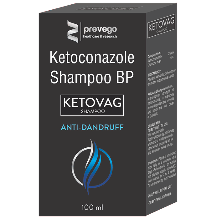 Ketovag Anti-Dandruff Shampoo is an antifungal medicine used to treat fungal infections of the skin. It works by killing the fungus that causes the infections. It kills fungi by destroying the fungal cell membrane. Ketovag Anti-Dandruff Shampoo should be used in the dose and duration as prescribed by your doctor. This medicine should be used regularly to get the most benefit from it. Do not use more than you need, it will not clear your condition faster and may only increase the side effects. Do not use it for longer than your doctor has told you to and let him or her know if your condition does not improve after 2 to 4 weeks of treatment. Make sure not to leave it on the scalp for more than 5 minutes. The most common side effects of using this medicine include dryness, hair discoloration, and abnormal hair texture. These are not usually serious, but you should call your doctor if you think you might have a severe allergic reaction. Signs of this include rash, swelling of the lips, throat or face, swallowing or breathing problems, feeling dizzy or faint, and nausea. Get emergency help if this happens. Avoid direct contact with your eyes. In the case of direct contact, wash your eyes with water, and seek immediate medical attention. It is not likely that other medicines you take by mouth or injection will affect the way this medicine works, but talk to your doctor before using it if you have recently used another cream that contains a steroid or had an allergic reaction to another antifungal medicine. This medicine should only be used if it is clearly needed if you are pregnant or breastfeeding. Ask your doctor if it is safe.