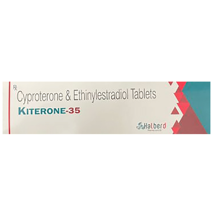 Kiterone 35 Tablet is a combination of two hormonal medicines used to treat symptoms of polycystic ovary syndrome (PCOS) such as excessive hair growth (hirsutism), acne, and irregular periods. It also works as a contraceptive, hence avoid using any other contraceptive pill. Kiterone 35 Tablet can be taken with or without food. Take it at the same time every day as it will help you remember to take it. The dose and duration will depend on what you are being treated for, but you should always complete a full course of this medicine as prescribed by your doctor. The most common side effects of this medicine include nausea, stomach pain, headache, weight gain, and breast pain. If these bother you or appear serious, let your doctor know. There may be ways of reducing or preventing them. Consult your doctor if you frequently experience spotting or brown discharge in the middle of the cycle. You must also consult your doctor if you notice unexplained swelling and pain in your limbs, shortness of breath, chest pain or changes in vision. Do not continue with the medicine and consult with the doctor if your periods do not start within a week of the treatment. Your doctor should also know about all other medicines you are taking as many of these may make this medicine less effective or change the way it works. Avoid the use of medicine if you are pregnant or breastfeeding.