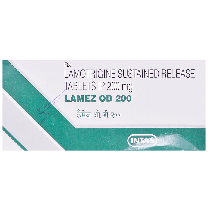 Lamez OD 200 Tablet SR is an anti-epileptic medication that is used to treat two conditions, epilepsy and bipolar disorder. It works by blocking the signals in the brain that trigger epileptic seizures (fits) and in another way to prevent extreme mood swings. Lamez OD 200 Tablet SR can be used alone or in combination with other medicines. It may be taken with or without food. Your doctor will decide the correct dose for you. This may increase gradually until your condition is stable. This medicine may take several weeks to work but it is important to take it regularly to get the maximum benefit. Do not stop taking it, even if you feel fine unless your doctor advises you to. You may have more seizures, or your bipolar disorder may get worse. The most common side effects of this medicine include skin rashes, headache, nausea, and vomiting, difficulty sleeping, and dizziness. Most side effects wear off, but if they bother you or do not go away, tell your doctor. Inform your doctor immediately if you notice a rash or peeling of the skin. There may be ways of preventing or reducing these effects. Long-term treatment can cause weakness in your bones (osteoporosis), increasing your risk of breaking a bone. Before taking this medicine, tell your doctor if you have kidney or liver problems, depression, or suicidal thoughts. Also let your healthcare professional know about all other medications you are using as some may affect, or be affected by, this medicine, including contraceptive pills. Consult your doctor if you are pregnant or breastfeeding as the dose may need to be adjusted. You should avoid driving or anything that requires concentration if this medicine makes you drowsy or dizzy. You may need frequent blood tests to check how you are responding to this medicine.